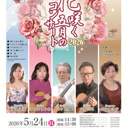 【 演奏予定曲 】 さくら横丁、初恋、星の世界 他にも心温まる演奏をたくさんご用意しています 【日 程】 2026年 5月 24日 日曜日 【時 間】 開場14:30 開演15:00 【会 場】 百年記念ホール 大…