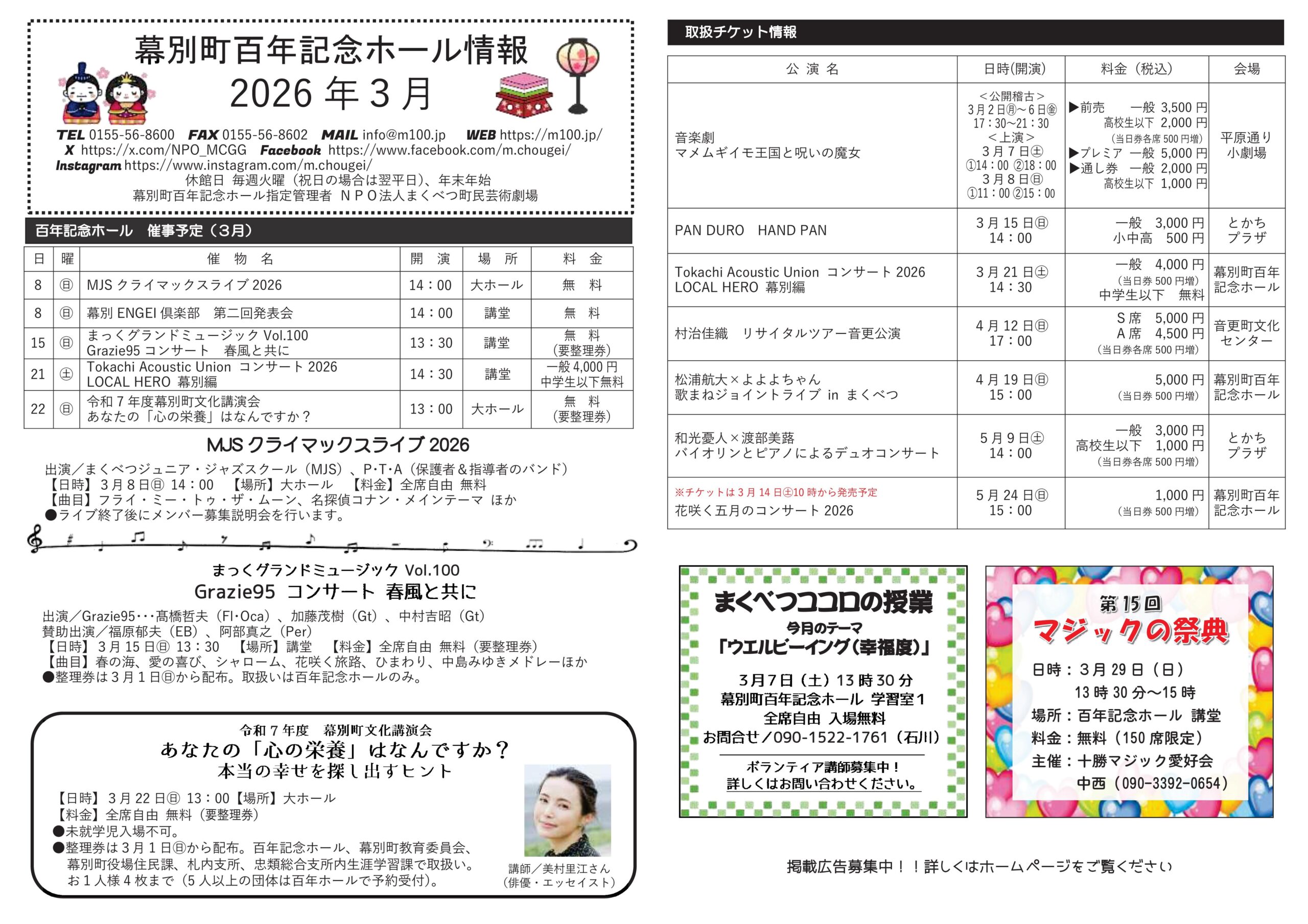 まくべつ町民芸術劇場 賛助会員募集中