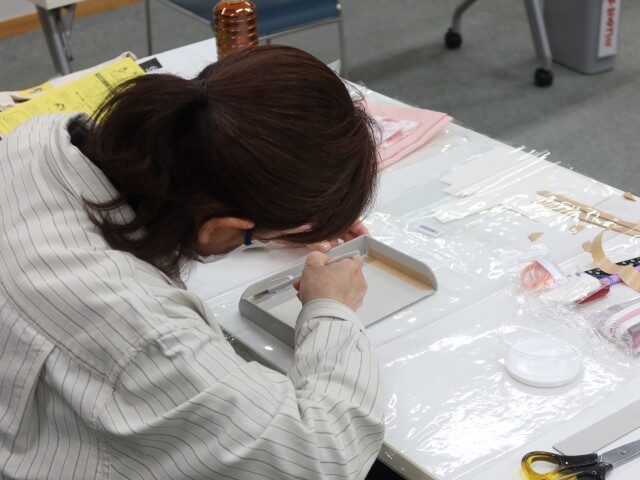 3回目は「カルトナージュでリボン付きトレー作り」でした。