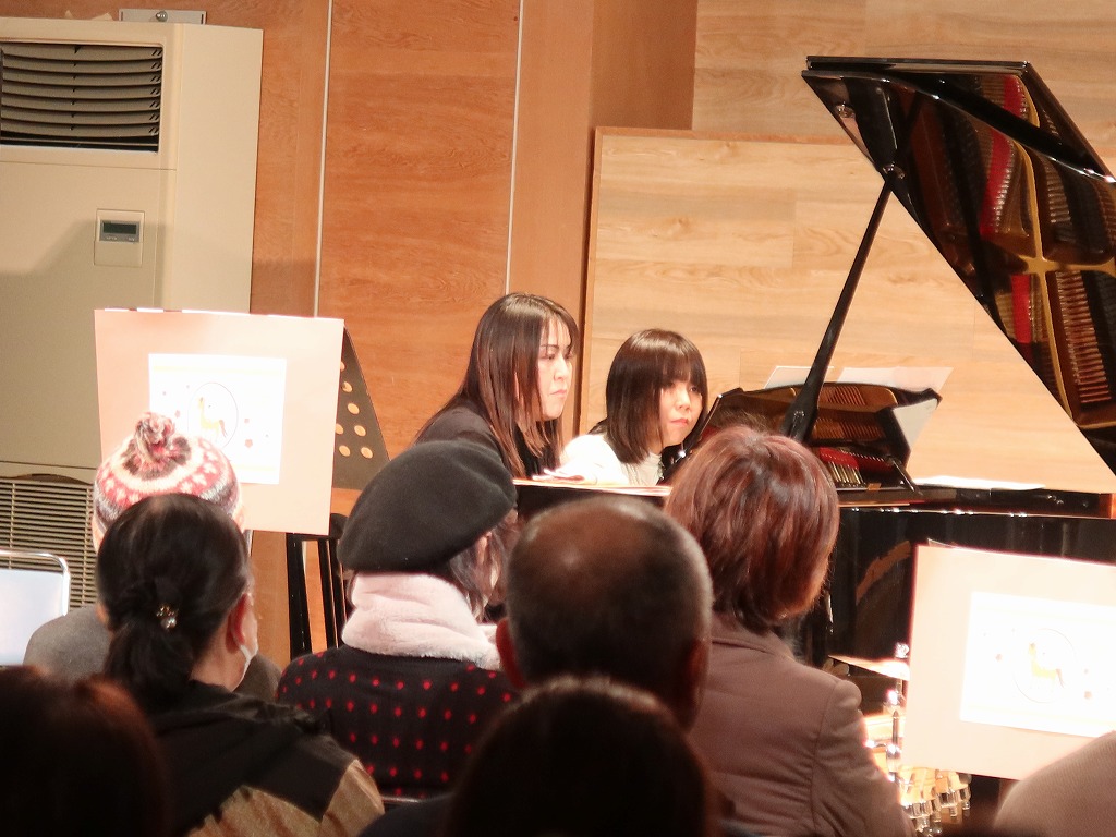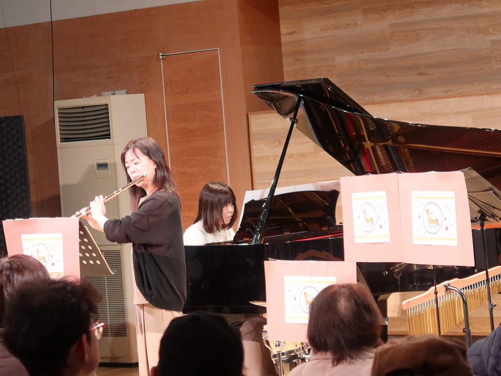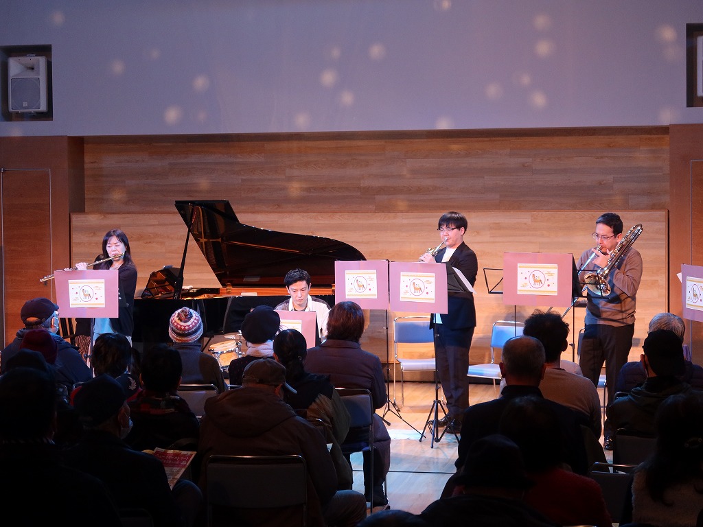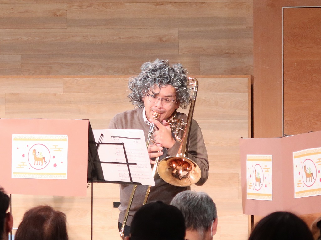 オープニングは新春には欠かせない楽曲「春の海」をピアノとフルートで、「一月一日」をフルート、トランペット、ホルン、トロンボーンで演奏しました。