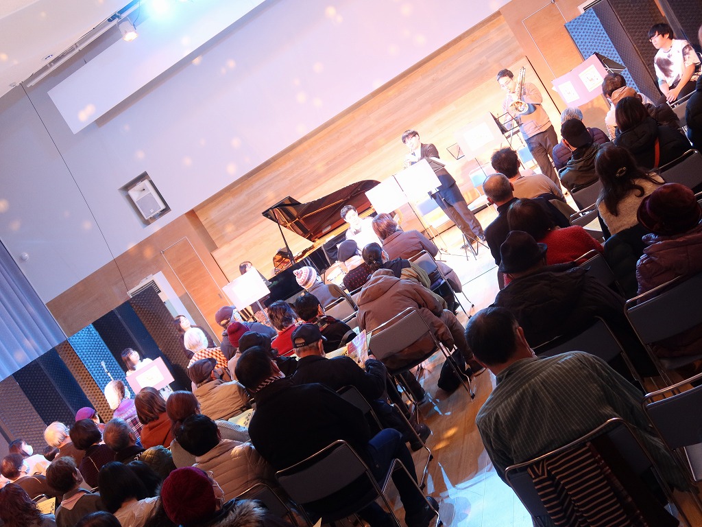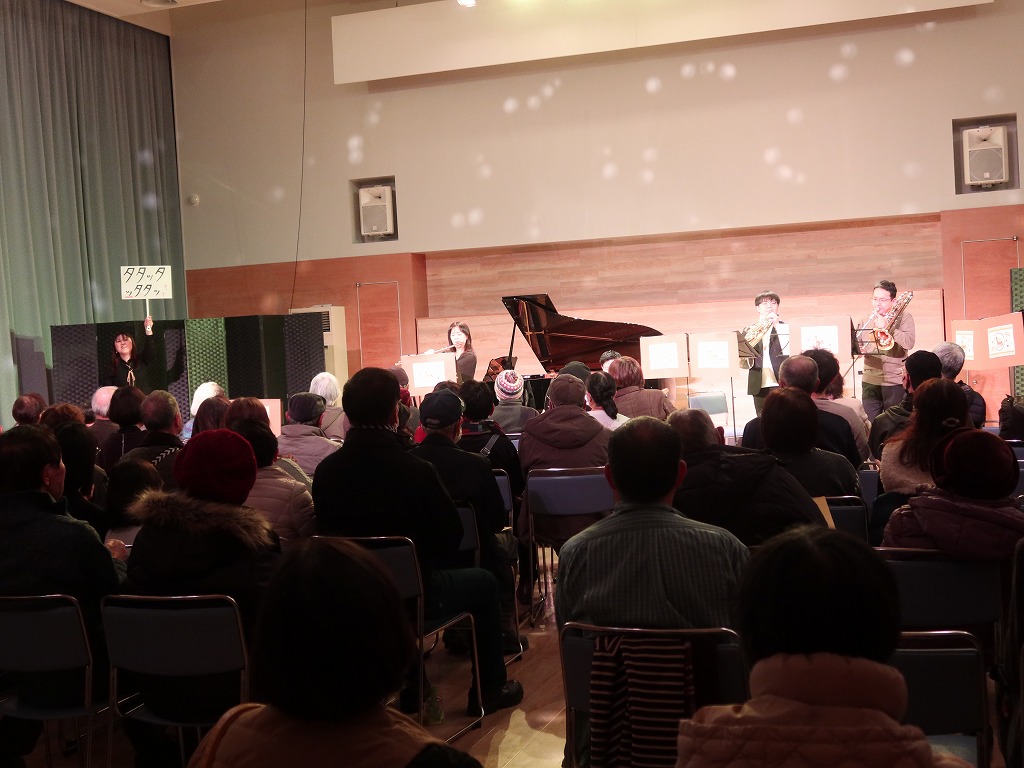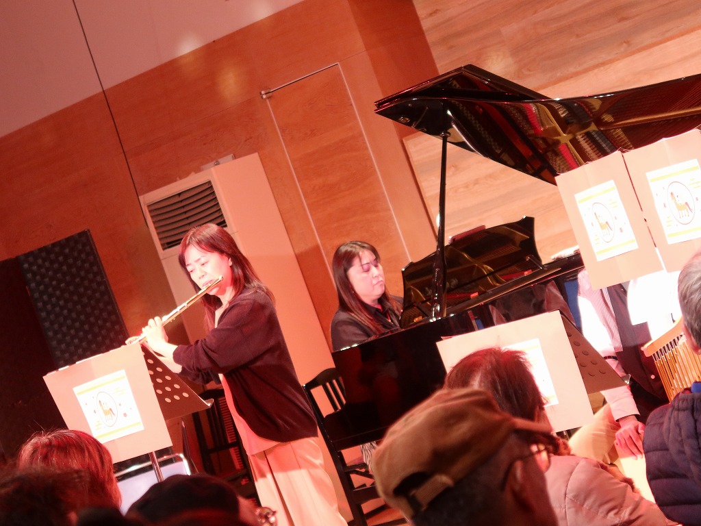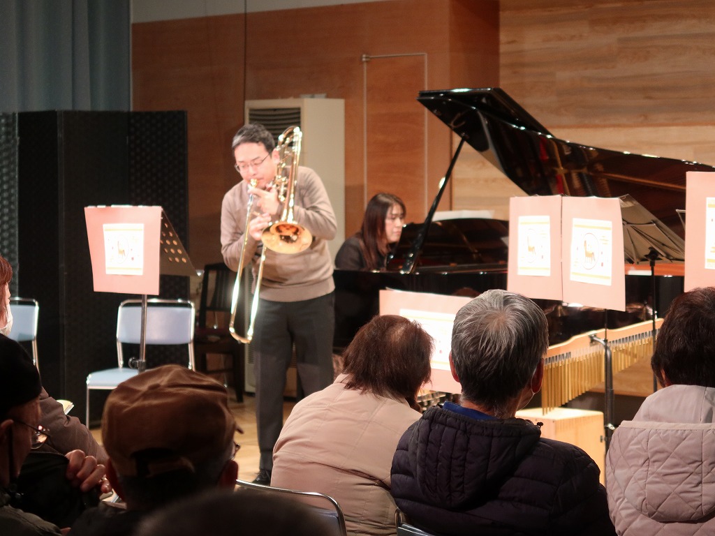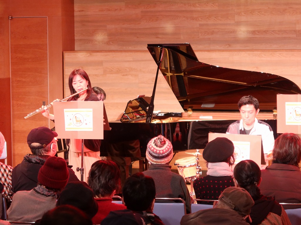 オープニングは新春には欠かせない楽曲「春の海」をピアノとフルートで、「一月一日」をフルート、トランペット、ホルン、トロンボーンで演奏しました。
