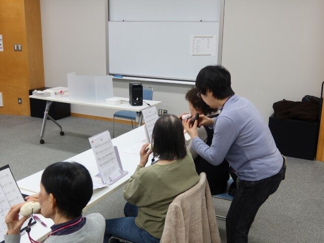 伴奏に合わせて個人発表曲の練習をしていました。