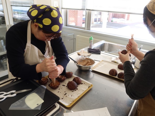 初回は「とろけるチョコクッキーシュー」作りを学びました。