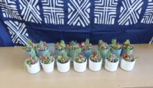 生涯学習講座「やむわっか先生のハンドメイド講座」全日程が終了しました。最終回は「手作りの器で多肉植物寄せ植えづくり」で、講師は青木享子さんです。あっという間に皆さん素敵な作品を完成し、情報交換で盛り上がりました!