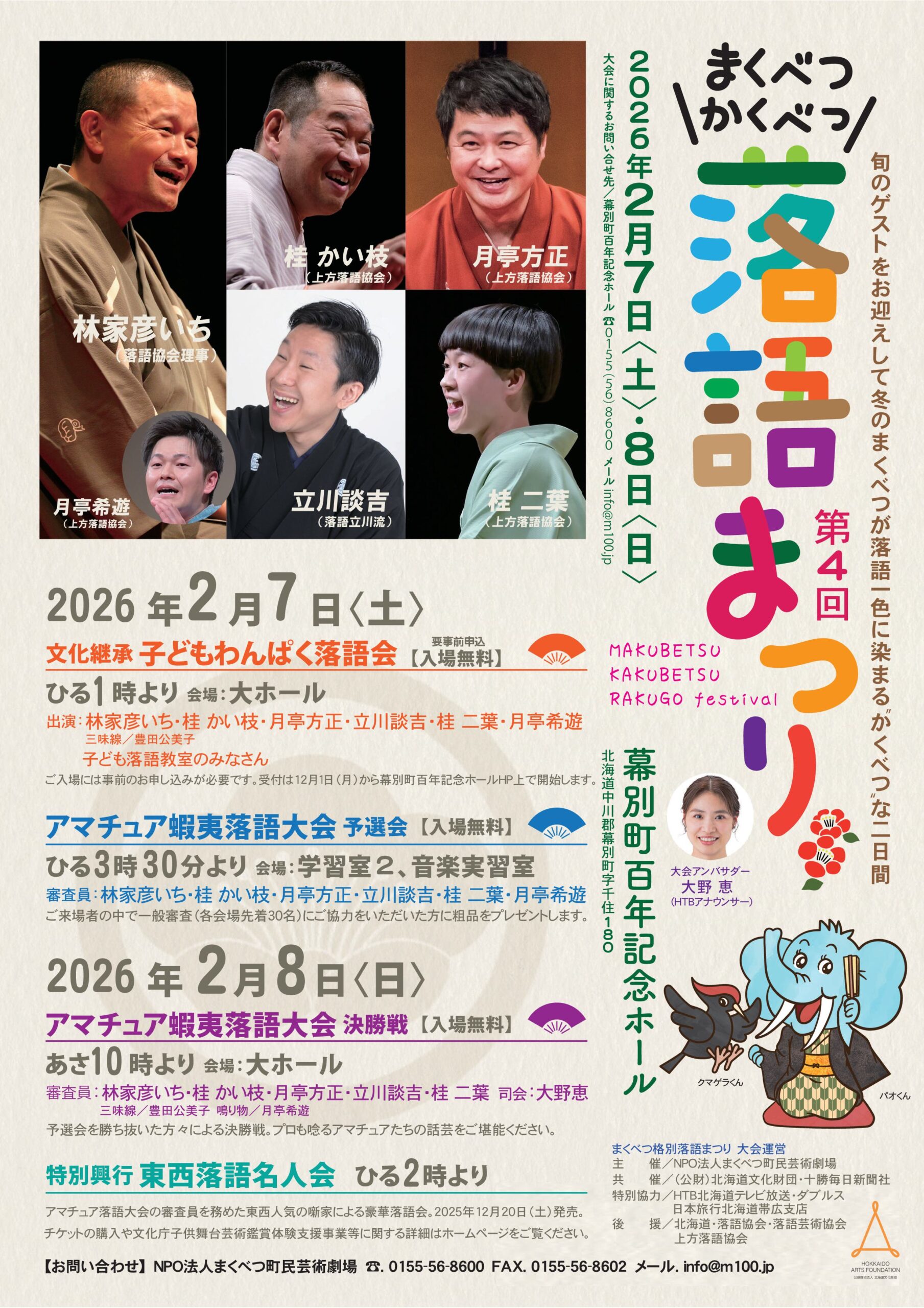 後  援 北海道 / (一社)落語協会 / (公社)上方落語協会 / (公社)落語芸術協会